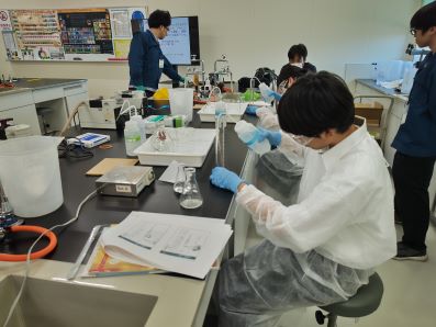 2025年度の「岡山理科大学 実験教室・体験教室:化学実験で楽しむ!~ガラスと色素でつくる色の化学~」(2026年3月14日開催) は、複数の高校生の皆さんにご参加いただき、盛況のうちに終了いたしました。