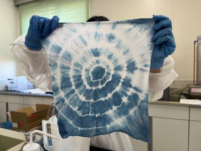 デニムの色素である『インディゴ』を合成し、ハンカチの染色体験を通して色の変化を観察します。