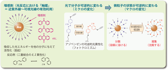 金微粒子に光感受性分子を結合させ、光エネルギーを利用する機能性化合物を開発